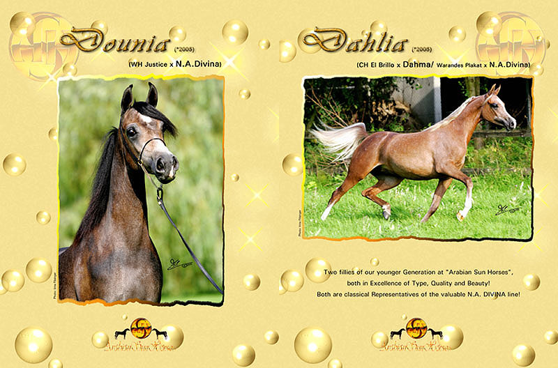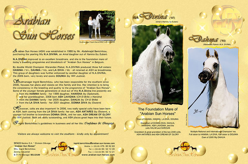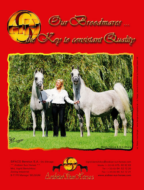 today's breeding programme and bloodstock of "Arabian Sun Horses" in Belgium. By double World Champion Warandes Plakat, N.A.DIVINA produced three full sisters: