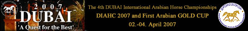 Now we are heading for the 4th Dubai International Horse Championships, which will be held on 2nd to 4th of April 2007 at the Dubai World Trade Center. And again, some new steps have been made: the first, second, and third shows had been an ECAHO affiliated "B" show, in 2007 it will be an ECAHO affiliated "A" show!
