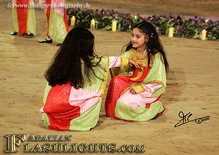 To the showground in the Dubai World Trade Center, everybody who wants to attend and watch the show has a free access in the public area. A specific area at one side of the show ring is reserved for the high V.I.P.s and royals, of which several ones from all over the Middle East attend regularly to enjoy the show in person and "live" (while the Dubai TV broadcasts the whole show live in TV at the Dubai sports channel) . The show starts every day at the typical Arab time and schedule, around 3 to 4 p.m. (=15:00 to 16:00 o'clock), and proceeds until the evening hours. The championships and finals, as well as the DGC awarding will be held the last show day which is April 6th. Participants from all over the Middle East - Dubai, Sharjah, Ajman, Abu Dhabi, Saudi Arabia, Qatar, Kuwait, Oman, Bahrain, and others, as well as horses invited from Europe will come and compete at the DIAHC 2007. Take your chance, and visit Dubai to attend this impressive show and during the (horse) days when the orient and the occident come together.