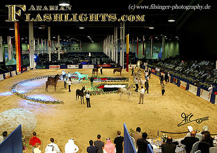The 3rd Dubai International Arabian Horse Show in 2006 brought up a bigger group of European horses invited to the Dubai show, and the event in general increased. Not only were major champions of the big show on the list, but also some successful horses from smaller shows who now competed against the horses from the Middle East. Besides the halter classes, there were also classes for racing horses, endurance horses and a championships for foals, all presented and judged in halter. The day before the show was an Arabian horse auction held in front of a huge crowd and audience, with many horses been sold at a high price - the interest in Arabian horses in the Emirates increases more and more!