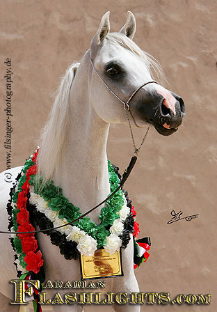Leased by Ajman Stud fpr 2007, and very successfully shown for: 2007 Qatar Int. Champion Stallion, Dubai Res. & Sharjah Int. Champion Stallion >
