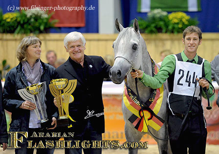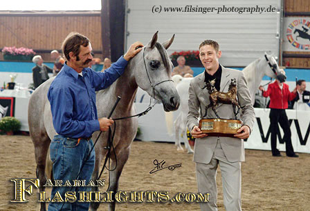 to get for Reinhard and Monika Sax the titles “Gold-Champion Filly and BEST IN SHOW” with their extreme beautiful filly AMYRA BINT KHIDAR.