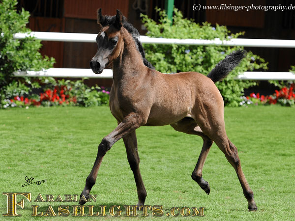 The above pictured one is a 2012 colt out of Van Alyssa, a 2002 mare who is originally from Argentina. Van Alyssa is a Don El Chall daughter out of a Ryad El Jamaal daughter, and she already produced champions. Her 2012 colt foal by QR Marc is possibly the next one? The foal is born in Saudi Arabia, bred and owned by General Mohammed Abdullah Al Subaie from Al Muawd Stud. The colt shows already in this early stage the quality that makes a foal special. It is not only the type and face; it is also the presence and attitude when showing off playing and running around in the paddock. It would be not a surprise if this little boy will be seen next year turning out in the show ring. The show attitude and the brave self confidence he has even just a few weeks old. |