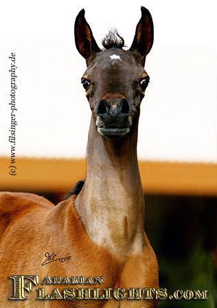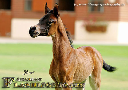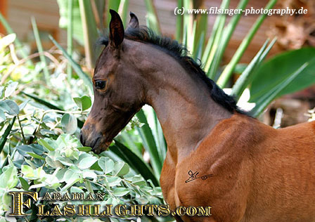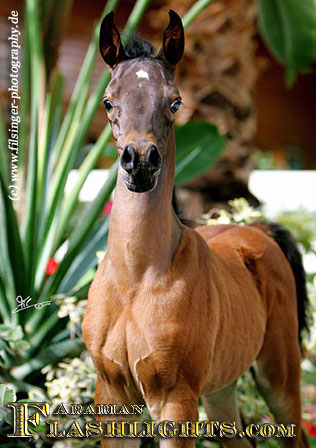 Another well known representative of AJA SANGALI is his daughter LANA AL KHALEDIAH (out of Thee Evening Star), also 2003 born, and also a chocolate dark bay winning many junior titles in Europe.