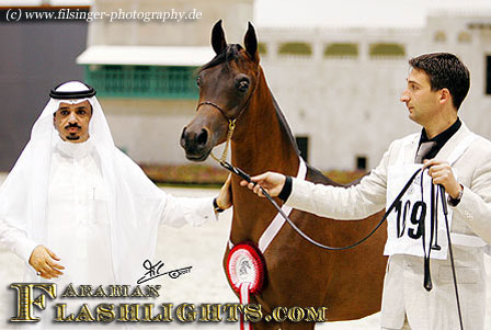 That was not all in this exciting year for him. At the World Championships in Paris, Mutlaq Ben Mushrif, representative of Al Khalediah, from Saudi Arabia, who was attending the show, saw AJA SANGALI during the second day of the show in the qualification class, and went straight ahead to buy this young colt for a price that the owner could not refuse. So the very next day, in Paris in the Finals, it was the Saudi anthem that was played while the Saudi colors and flag went up - as AJA SANGALI became indeed the World Champion Colt.