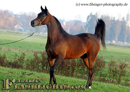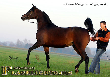 When AJA SANGALI was a yearling, and had already been sold by the Hickfords to a new breeder from England, Jackie Ware, of Portsdown Arabians, his breeders, owners and the trainer Frank Spönle decided, to bring him out to shows - due to his individual quality but also as a representative for his young sire, FS BENGALI.