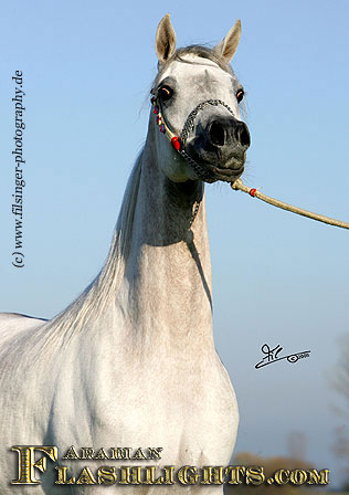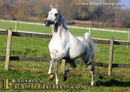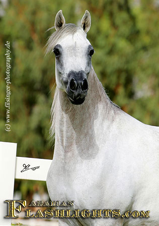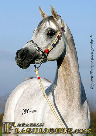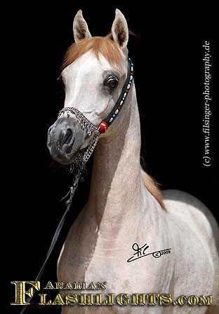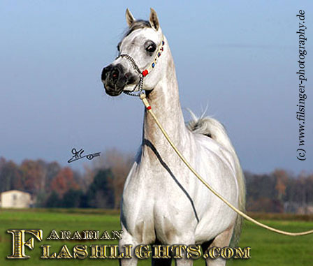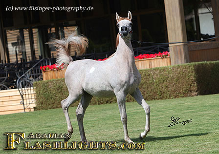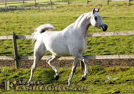 ATHENAA was originally bred in Germany, in cooperation by the dam's owner, Ralf Heckenbücker, and his friend, Frank Spönle. After ATHENAA's dam, ASS WINDI having been bred to the straight Egyptian ASHHAL AL RAYYAN, she was sold to Delyth and Mark Gamlin, from Great Britain. She gave birth to a lovely filly foal in England in 2002 which was named ATHENAA. Upon the system in England, the foal born became registered with the Gamlins as breeder. However, they were excited by this filly from the very beginning, and soon they knew that they should show her. This is what Mark Gamlin did when she was a three years old, taking her to the all Nations Cup in Aachen, after she had been already successful in England. ATHENAA immediately became 2nd in her class and 'Top Five' Filly of the 2005 Aachen show, and at the World Championships in Paris in the same year, she succeeded in the 'Top Ten' group of Junior Females.
