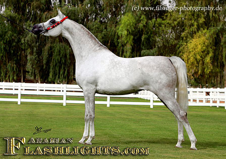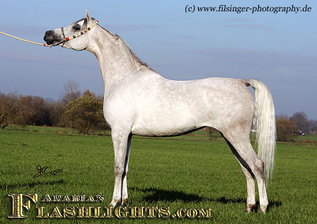ATHENAA is not only a very typey mare, she also has a very good overall quality, with substance, balance and size. This doesn't amaze too much when we study her pedigree: her sire, ASHHAL AL RAYYAN, comes from one of the most important damlines in the straight Egyptian breeding, the famous MALIKAH line who was a Ghazal daughter. On dam's side, ATHENAA traces back to a famous Russian/ Crabbet bred mare, SASKIA RJ, a Plakat daughter out of Barwna, who is a full sister to World Champion Stallion Warandes Plakat.