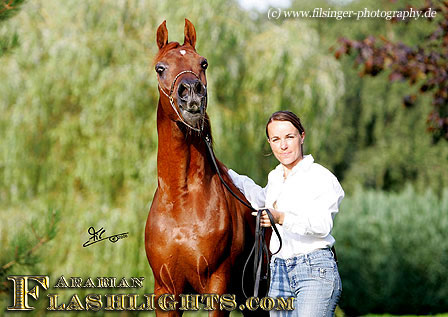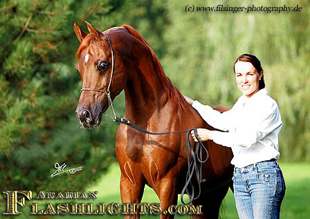 to be one of the foundation broodmares in this young breeding programme. HANISHA's daughter, and DIPLOMATT's granddaughter, the 2006 born ASH LAVIGNIA (by CH El Brillo), stays at 'Arabian Sun Horses' in Belgium to continue the line there. |