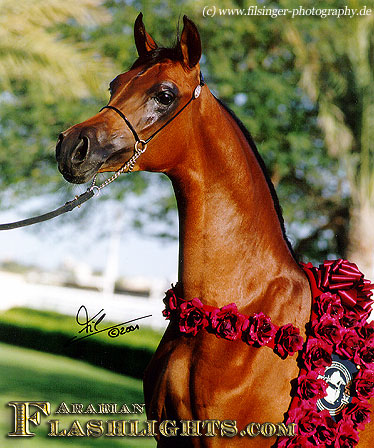 - Champion Stallion at the "All Nations Cup" in Aachen in ---, World Champion Stallion in Paris in 2001, European Champion Stallion in Moorsele in 20--, Egyptian Event Champion Stallion and Supreme Champion in Lexington, USA, in 20--