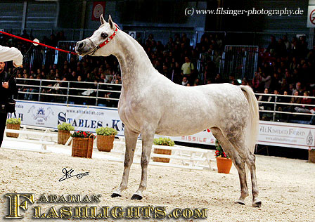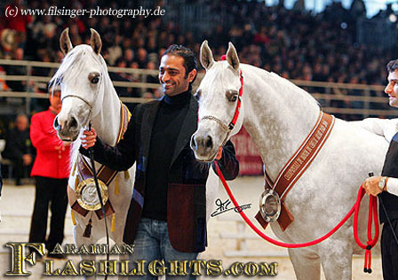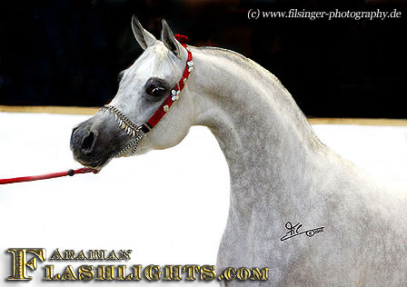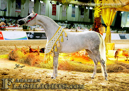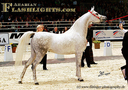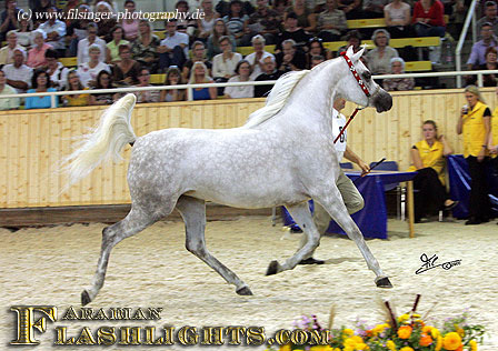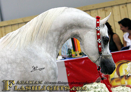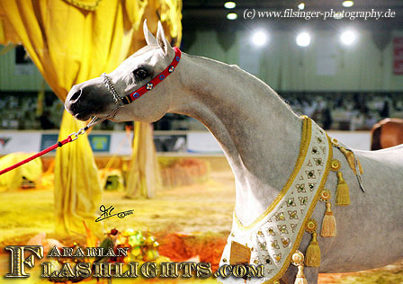 Bred and born in Italy in the small studfarm and breeding programme of Michelle Boscarino, PANAREA traces back to Russian lines on mother's side. The mother is the chestnut PALAWAN, a daughter of the 1987 born PATREENA, an International Reserve Champion Mare in Paris in 1991, when Paris offered still two separate shows at the same place and days. PALAWAN is paternal granddaughter of PADRON (also sire of the 1991 World Champion Filly LADY AMIE), and maternal granddaughter of PONOMAREV (also sire of the 1991 World Champion Mare JULIA BEA). Following in the tradition of Paris Champions, PANAREA achieved at the age of three, in December 2006 the title and ribbons as World Reserve Champion Filly, and behind the one year younger stablemate and paternal half sister, Bess-FA'IZAH. Just nine months before and at the prestigeous Dubai International Championships, it was the opposite round, Bess-FA'IZAH as Champion, and PANAREA as Reserve. Both are proudly owned by HH Sheikh Ammar Bin Humaid Al Nuaimi, from Ajman Stud, United Arab Emirates.