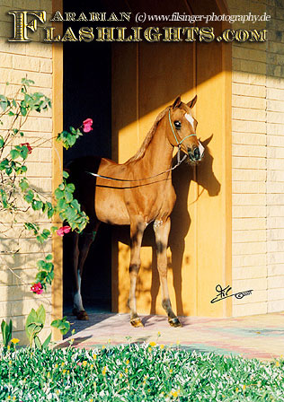 PSYCHES AMBER GEM has already produced some foals, several of them chestnuts like her. In Europe, for example her daughter SHAMILAH AMBRA (by Warandes Plakat) was 1998 Menton Champion Filly as yearling at the same show when her mother took the Champion Mare title. In Kuwait, PADRONS AMBER GEM gave birth to the 2000 filly named MABROUKA Ezzain (by straight Egyptian, Ansata AL MURTAJIZ), and we might hear more about her and from Ajman Stud in the United Arab Emirates in the future. |