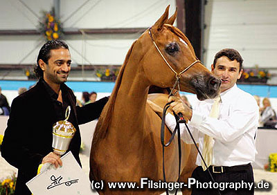 Senior Champion Mare Sheikh Ammar, proudly presenting his mare after the win