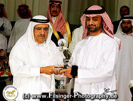 - presenting a special trophy to H.H. Sheikh Ammar Al Nuaimi (right)