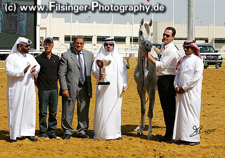Sheikh Hamad Bin Ali Al Thani, from Al Shaqab, with his three Al Shaqab fillies having placed 1st to 3rd in this group B of Yearling Fillies