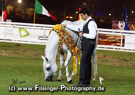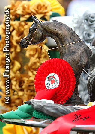 250.000 Dhs (= ca. 54.00 EUR) for the winner of the special award * "The President Cup" (to be awarded to the best UAE bred horse at the show with the highest score in show);